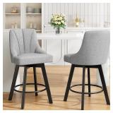 Swivel Bar Stools with Backs, 24" Counter Height Bar Stools Set of 2, Fabric Upholstered Counter Barstools with Solid Wood Legs for Kitchen Island, Home Bar, Light Gray