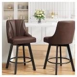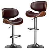 Bar Stools Set of 2, Bar Stools for Kitchen Island with Bentwood Back and Leather Seat, Swivel Barstools for Kitchen Counter, Bar, Brown
