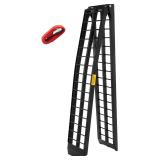 【Ramp Dimension】Foldable Size: (116x28.5) (45.7"x11")(single), Unfolded Size: (120'' x 11.6'')/(305 x 29.5)cm (L x W)(single) , Load Capacity: 600lbs(272kg)/pc, Ramp Weight: 27.5lbs(12.5kg)/pc. Suitable for vehicles with tires section width of 10" (250mm).【600 LBS Capacity】Arch design and serrated crossbar can allow the ramp to hold up to 600 lbs.And the Serrated crossbars will allow great traction.It is perfect for loading onto porches, curbs, landing, steps, or mini vans.