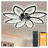 Elegant Black Flower Design: This flush mount ceiling fan combines a fan and light in a stunning white flower shape, ideal for rooms up to 25㎡ (35" diameter). Perfect for low-profile small spaces like bedrooms, it adds style and functionality