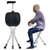Portable Adjustable Folding Walking Cane with Seat Allows Durability While Walking and Convenience for Sitting, Alloy Crutch Chair, Anti-Slip Lightweight Walking Stick for Seniors