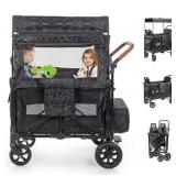 Safety Brake System: Our kids wagon uses a single-step foot brake mode, which is more responsive and sensitive when braking. Rear wheel 11 inches, 360 degrees rotatable movement, use to steer more flexible. Applicable to a variety of places: You can use this wagon for kids at the beach, park, camping, travel, shopping, its excellent storage function, large storage space can fully meet your family needs. Made of linen cloth, it is resistant to dirt and easy to clean. Designed for children over 6 months of age, the maximum weight capacity of 110 pounds.