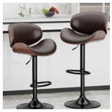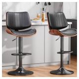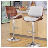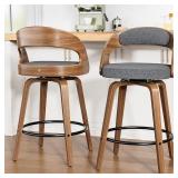 Bar Stools Set of 2, 26" Swivel Counter Height Bar Stools with Bentwood Legs and Back, Mid Century Modern Faux Leather Upholstered Counter Stools for Kitchen Island, Bar, Restaurant, GREY