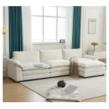 87in Beige White Sofa, Couches for Living Room 21in Extra Deep Seats, Comfy Corduroy Sofas for Living Room No Tool Assembly, Modern Oversized Love Seat with 2 Pillows, Sofa Couch for Bedroom