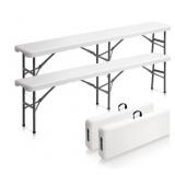 6 Feet Plastic Folding Bench Outdoor Picnic Party Seat White(2 PACK)