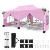 NP12123PI 10 x 20 ft. Pop up Canopy with 6 Sidewalls Windows & Carrying Bag - Pink