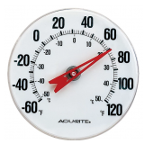 Keep an eye on the temperature using this AcuRite 5 in. Indoor or Outdoor Thermometer. The weather-resistant thermometer is easy to use and shows accurate temperature readings.