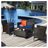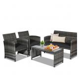 4 Pieces Rattan Patio Furniture Set with Weather Resistant Cushions and Tempered Glass Tabletop
