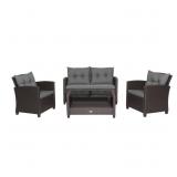 Dimension of 4 Piece Patio Wicker Set: Size of single sofa: 23" x 25" x 31", size of loveseat: 43.5" x 25" x 31", size of coffee table: 34.5"x 18" x 17.5". Max load of single sofa: 350 lbs, max load of loveseat: 700 lbs, max load of coffee table: 110 lbs.