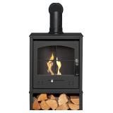 (154) OKO S2 Bio Ethanol Stove with Log Storage in Charcoal Grey with Angled Stove Pipe