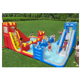 - Multiple Play Features – Includes a large water slide, climbing wall, splash pool, and built-in water blasters.