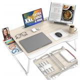 Cooper Mega Table Plus Premium XXL Extra Large Laptop Desk for Bed, Table for Laptop in Bed, Desk for Floor | Portable, Folding Legs, Book Stand, Tablet Groove, Drawer, Extra Wide Surface (White Oak)