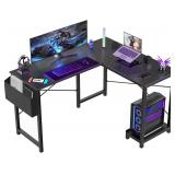 Sweetcrispy L Shaped Desk - Computer Desk Corner Desks Gaming Desk PC Table with CPU Stand Side Bag for Home Office Dorm Sturdy Writing Workstation, Black, 50-Inch