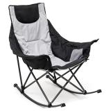 SUNNYFEEL Oversized Rocking Camping Chair, Fully Padded Patio Chair with Side Pocket, High Back Portable Lawn Recliner with Headrest, Outdoor Camp Rocker Chairs for Adults Heavy Duty 300 LBS