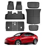 KIKIMO for Tesla Model Y Floor Mats 9PCS, All-Weather Floor Mats for Tesla Model Y 2020-2024 2025 Accessories, Non-Slip Front Rear Cargo Backrest Liners Custom Fit for 5 Seater (NOT fit Juniper)
