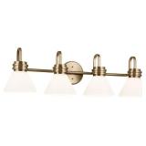 KICHLER Farum 34 in. 4-Light Champagne Bronze Modern Bathroom Vanity Light with Opal Glass Shades