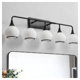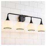 30 in. 4-Light Black Bathroom Vanity Light with Milky White Globe Glass Shades