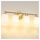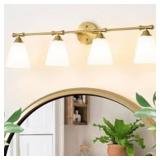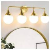 KAISITE 33 in. 4 Light Brushed Gold Vanity Light with Milk White Globe Glass Shade Modern Bathroom Lighting Fixtures