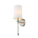 1-Light Brushed Nickel Wall Sconce with White Fabric Shade