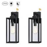Hukoro Bonanza 18 in. 1-Light Matte Black Outdoor Wall Lantern Sconce with Dusk to Dawn (2-Pack)