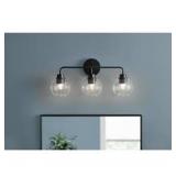 - Contemporay 3 light Vanity in Matte Black Finish W/Clear Glass