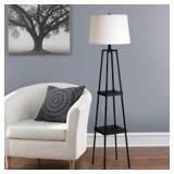 Cresswell 58 in. Distressed Iron Etagere Floor Lamp with Linen Shade
