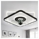 Oaks Aura Cotti 20 in. Integrated LED Indoor White Square Low Profile Ceiling Fan with Light, Flush Mount Ceiling Fan with Remote