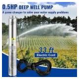 SKYSHALO Deep Well Submersible Pump 0.5 HP 115-Volt 28 GPM Flow 167 ft. Head Water Pump with 33 ft. Electric Cord for Home Use