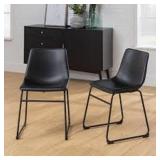 Offering an on-trend look with a sophisticated modern touch, these faux leather dining chairs set of 2 have an eye-catching appeal that will soon become the focal point of your room. The seat and back are wrapped in faux leather upholstery and filled with foam for just the right amount of support. A curved silhouette and a semicircular cutout complete this mid-century modern-inspired design. Each stool features four angled tapered steel legs finished. Plus, these chairs are easy to care for