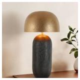 This 2-light table lamp is crafted with a sleek black base and adorned with intricate gold foil accent shades, adding a touch of sophistication to any room. The lampshades feature a unique gold foil interior, casting a warm and inviting glow when illuminated. Made from high-quality iron and resin materials, these lamps are built to last and are sure to become a focal point in your home decor. Easy to install and perfect for a desk, bedside table, side table, coffee table, or console table. The lamp's modern vintage style effortlessly complements existing decor, creating a refined and luxurious ambiance in your home