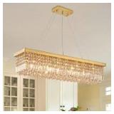 Luxury Gold Chandelier: Perfect rectangle chandelier for dining room. Mirror shiny gold stainless steel lamp frame, smooth, anti-rust, and easy to clean, long lifespan. Elegant raindrop lampshade, adorned with K9 crystal strands and faceted cut solid crystal ball, creating a romantic & warm atmosphere. Suitable for dining room, kitchen island, living room, hallway, closet, etc.