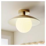 The dome shade features a unique gold foil interior, casting a warm and inviting glow when illuminated.