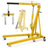 - Take on the toughest lifting tasks with confidence using this Heavy-Duty 2-Ton Engine Hoist. Designed for professional and DIY mechanics alike, it supports up to 4,400 lbs, making it ideal for lifting engines, transmissions, and other heavy equipment. The adjustable boom offers four capacity positions for added versatility, while the foldable frame ensures compact storage.