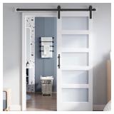 30x80 Inch Glass Sliding Barn Door Slab and 5.5ft Hardware Kit Included, 5 Frosted Glass, LVL Wood Panel Covered with White Water-Proof Scratch-Proof PVC Surface, Simple DIY Assembly