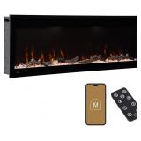 (133) Modern Ember Aerus 50 Inch Smart Linear Electric Fireplace | Recessed in-Wall or Wall-Mount | LED Multiple Flame Colors | Alexa/WiFi Enabled | 5.75” Profile | Remote Included