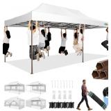 Outsunny 10' x 20' Pop Up Canopy Tent with 4 Sidewalls, Heavy Duty Tents for Parties, Outdoor Instant Gazebo with Carrying Bag for Garden, Patio, White
