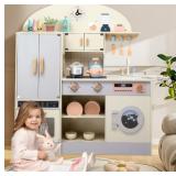 3. Educational and Fun: The all-in-one kitchen toy provides an ideal place for children to engage in role-playing kitchen games. The functional washing machine creates an authentic role-playing experience. Beyond fulfilling kids' chef dreams, this pretend toy kitchen set combines education with fun, helping to develop hands-on skills, imagination, coordination, creativity, and logical thinking through play.