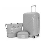 Zimtown 3 Piece Carry-on Luggage Sets, PP Hardside Suitcase Set with Spinner Wheels, Portable Travel Bag and Toiletry Bag, Light Gray