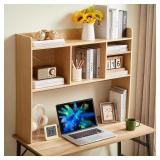 Desktop Bookshelf, Countertop Storage Hutch with 4 Shelves for Computer Desk, 2-Tier Display Rack, Multipurpose Wood Desk Hutch Storage Organizer for Home Office Dorm, Natural