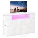 Versatile Design - Equipped with a built-in power outlet and LED light, this fabric dresser combines functionality and style. Easily control these LED lights with the included remote or app. With over 60,000 DIY colors to choose from, you can set the perfect lighting mood for any scene. Meanwhile our long drawers features built-in power outlets, allowing you to easily charge your devices without the need for extra extension cords.