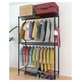 Ktaxon Heavy Duty Rolling Garment Rack Portable Closet System Double Rod Clothes Storage Rack Freestanding Closet Organizer Unit with Adjustable Shelves, Black