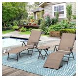 (60). 3-Pc. Set Folding Chaise Lounge Chairs and Side Table-Espresso