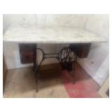 FURNITURE* Nice Anique Oak Curve Glass Curio, Globe Warnecke 4 Sectional Bookcase, Highboy Walnut Chest of Drawers, Rustic Buffet, Nice Walnut Buffet, Oval Top Marble Parlor Table, Round Top Marble Parlor Table, Small Harp Base Oval Parlor Table, Queen Ann OvalEnd Table, Nice Small Cedar Chest, Leather Chair with Ottoman, Nice Diamond Pattern Stuffed Chair, Wing Side Parlor Chair, Pair of Oak Dinning Chairs, Pair of Bar Chairs, Bevel Glass Top Coffee Table, Sofa, King Size Bed, Pair nice Barrel Lamps, Needle Point Eastlake Chair, 2 Painted Antique School Desk, Singer Sewing Machine Base w/Marble Top, CD Armoire, Small Square Oak End Table, Wrought Iron Porch Glider with w Matching Chairs, Red Metal Breakfast Table & Chairs, Gray Patio Breakfast Set, 2 Nice Lounge Chairs, Cow Hide Chair, 5 Canvas Lawn Chairs, Pair Wrought Iron Dining Chairs, Thick Wood Bench, Dining Table, Child’s Rocker, Wine Rack, 4 Childs Iron Chairs, 2 Iron Tables, Wood Wash Stand, Hamond Electric Organ, and more!