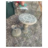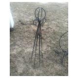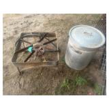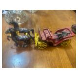 CAST IRON & TIN* Cast Iron Griddle, Cast Iron Umbrella Stand, Tin John Deere Tray, CI Hibachi Grill, Cast Iron Dog, CI Grenade Paper Weight, Aluminum Toy Horse and Buggy, Aluminum Umbrella Stand, Wire Rooster Pot Hanger,