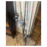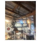APPLIANCES* 2 Metal Hanging Multi Light Fixtures, Double Foot Raise Trash Can, Pair of Porch Lights, Turkey Pot w/Burner, Western Custom Floor Lamp, Assorted Wall Clocks, Lasko Fan, Barn Lantern,