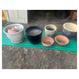 GLASS & POTTERY* Gartopf Sauerkraut Crock Urn, Dutch Girl Cookie Jar, Grapette Glass Syrup Banks Jars (Bear, Cat, Clown & Elephant), 3 Glass Oil Lamps, Mexico Porcelain Pot, Assorted Panter Pots, Gibson Set of China, Glass Serving Platters,