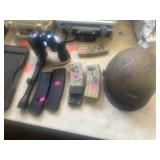 ITEMS OF INTEREST* Nice King Size Bedspread, Shames and throw Pillow covers, Assorted Pillows, Religious Books, Sandwich Chalk Board Sign, Halloween Decore, 2 Skeletons, 2 Pottery Jack-o-lanterns, Real DelSol Slot Machine, Toy Slot Machine, Abu Garcia Reel/Ugly Stick Rod Combo, Zebco 888 Reel, Assorted Rod N Reels, Assorted Tackle Lures, Plastic Worms, Throw Lines, Pelican Pistol Case, Meal Ammo Box, Assorted Ice Chest, Elk Skull, 2 Cow Skulls, Hog Skull, Numerous Vintage Table Cloths, Doylies, Curtains, Linens, Office Supplies, 2 Next Mountain Bikes, Schwinn Wagon, Wrought Iron Pant Stands, Hanging Baskets, Swinging Plant Stands, Assorted Metal Yard Art, and more!