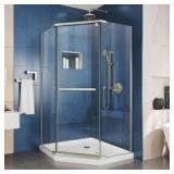 (53). DreamLine Prism SHEN-2136360-04 36 1/8" x 72" Semi-Frameless Neo-Angle Pivot Shower Enclosure in Brushed Nickel