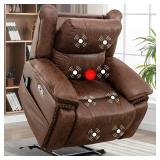 (45). CANMOV Faux Leather Power Lift Recliner Chair with Massage and Heat for Elderly, Dual Motor Recliner Chair, Electric Recliner with Adjustable Headrest, USB Ports, 2 Concealed Cup Holders, Brown