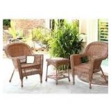 (18). Jeco 3pc Wicker Chair and End Table Set in Honey without Cushion